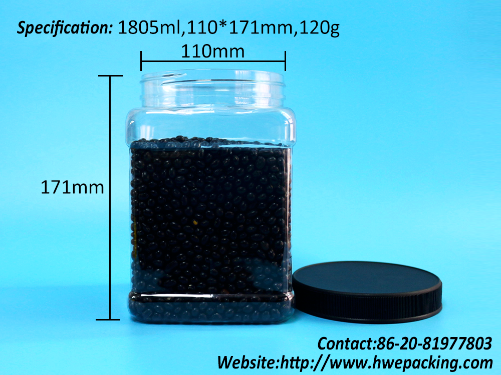 Food Grade Black Screw Lid PET Plastic Grip Square Food Jar For Baby Food Candy Cookies Images |